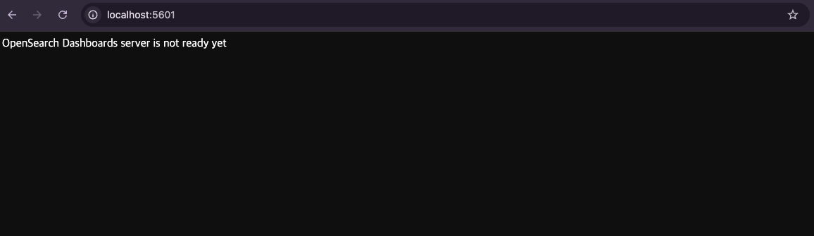 만약 아래처럼 OpenSearch Dashboards server is not ready yet 이라고 뜨는 경우 opensearch 컨테이너가 제대로 떠있지 않은상태입니다