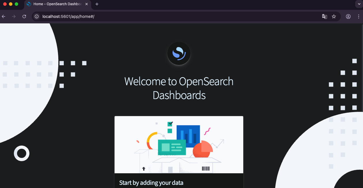 로컬호스트:5601 포트로 들어가게되면 오픈서치 검색엔진이 떠있는것을 확인하실 수 있습니다